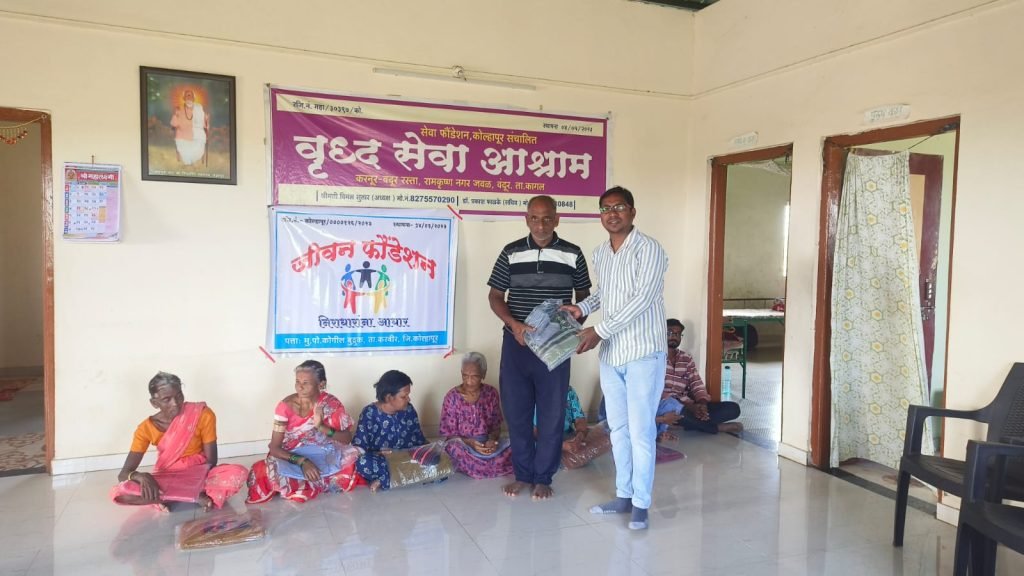 वृद्धाश्रम भेट दिनांक – 04/12/2024 ई रोजी स्थळ – वंदुर – करणुर ता – कागल कोल्हापूर येथे असलेल्या वृद्ध सेवा आश्रमास जीवन फौंडेशन कडून हिवाळ्यात थंडी बचाव करीता स्वेटर्स आणि कान टोपडी (मोफरेल) देण्यात आले.